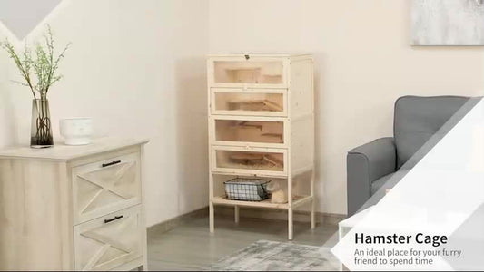Pawhut Hamster Cage Wooden Mouse Rodent Small Pet Animals Tall 5-Tier Play